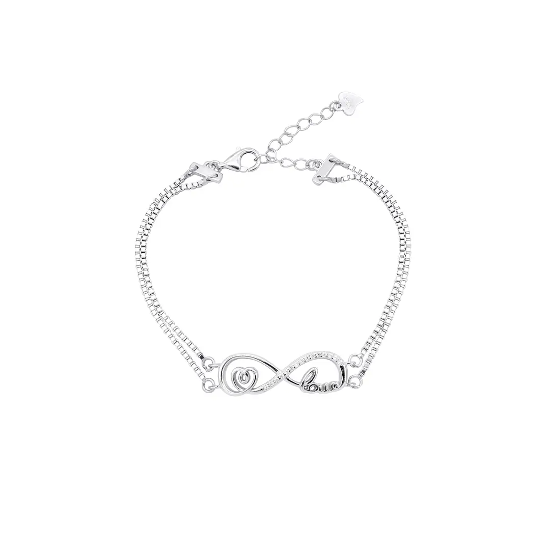 Celebrate timeless love and endless elegance with this 925 Silver Infinity Heart Bracelet, delicately crafted for modern style and everyday wear. The centerpiece features a 1-inch infinity symbol intertwined with a heart, adorned with high-quality sparkling zircon stones that add a graceful shine.