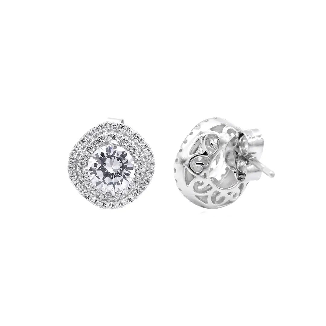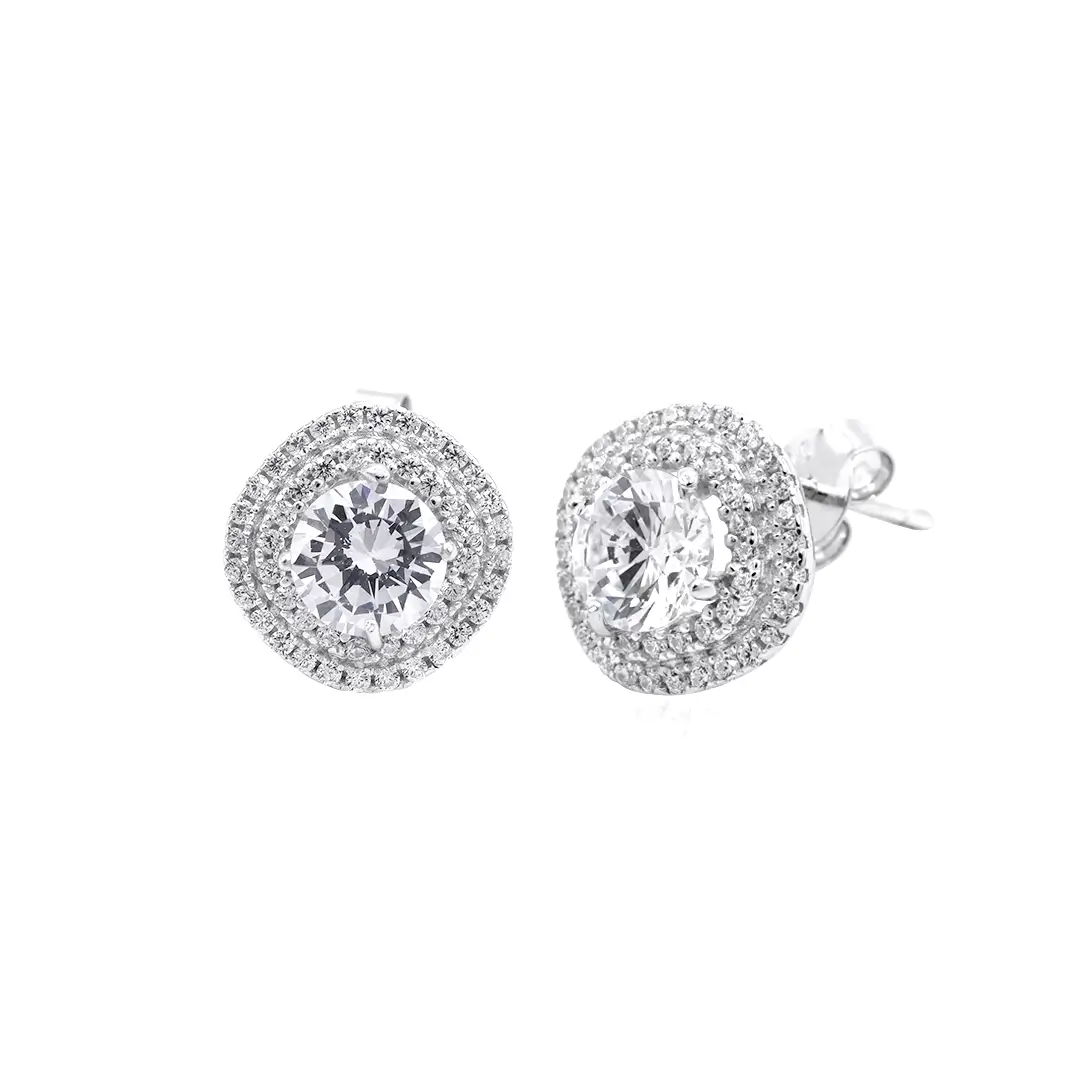 Elevate your style with our exquisite 925 silver stud earrings, a timeless addition to any jewelry collection. These stunning earrings are crafted from premium 925 sterling silver and feature brilliant, high-quality zircons that capture the light with every move. The intricate double-halo design creates a dazzling effect, making these studs perfect for both everyday wear and special occasions.